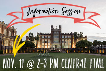 Meet the Director of the Loyola Institute for Ministry and learn about our degrees and certificates in theology and spirituality. They are Catholic, Ignatian, practical, and affordable. Get details on our B.A. in Ministry and Theology and master's degrees in pastoral studies and religious education, and learn more about our community of learners. Those who attend an Information Session and take a graduate or undergraduate class in calendar year 2025 will receive a one-time $500 tuition scholarship in their first semester.